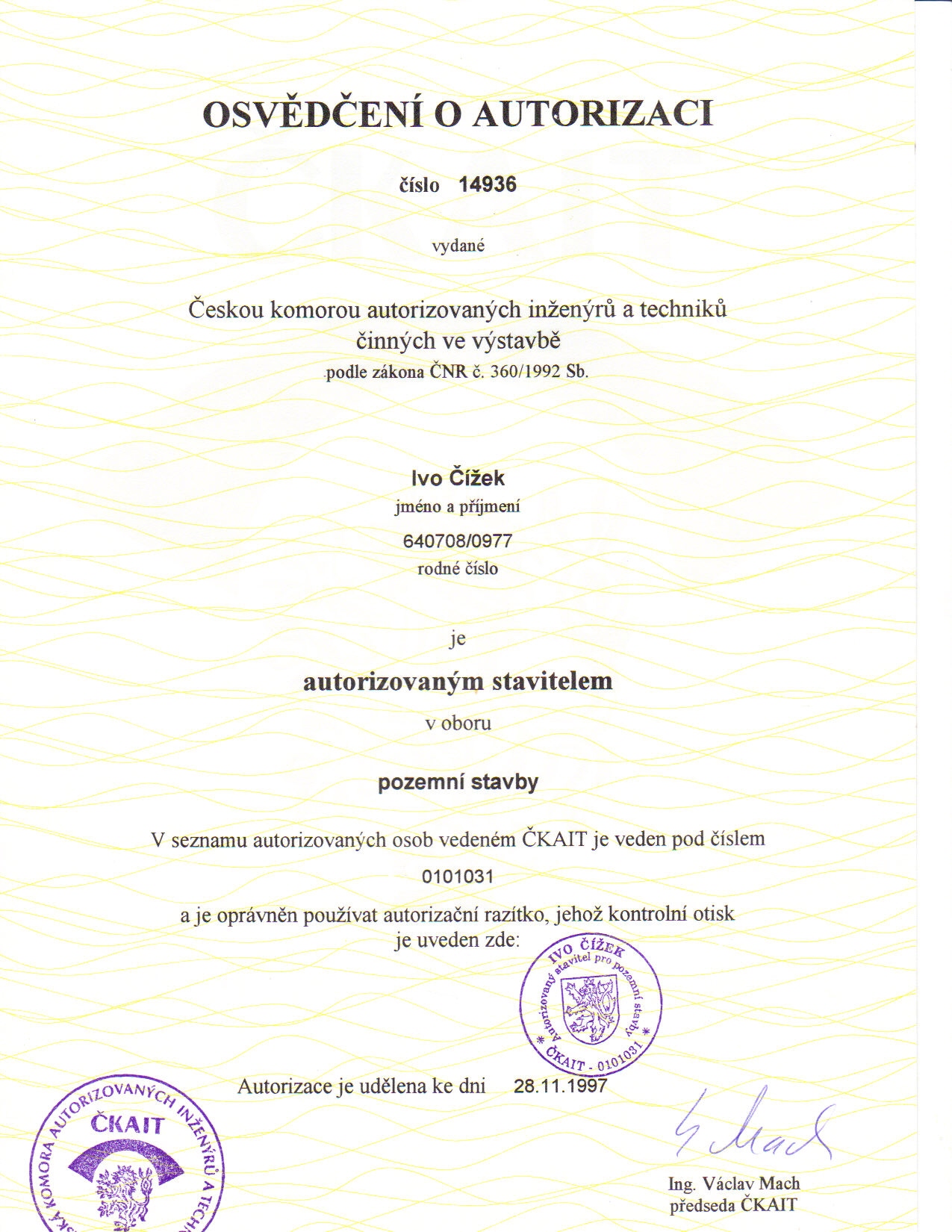 čkait autorizace pozemní stavby